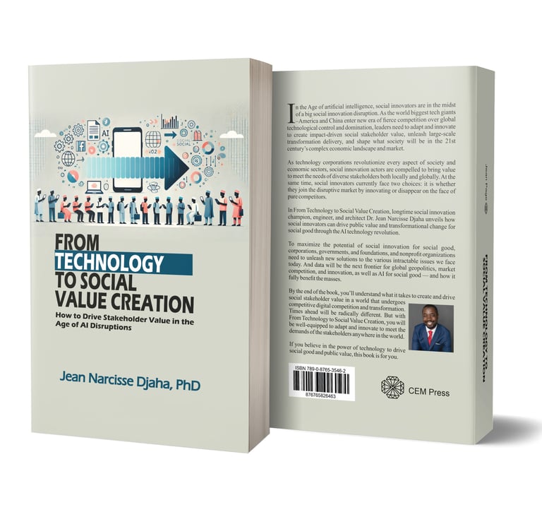 In From Technology to Social Value Creation, renowned social innovation architect Dr. Jean Narcisse Djaha delivers a powerful blueprint for how artificial intelligence can be harnessed not just for efficiency or profit—but for public value, human dignity, and transformational change. With clarity and conviction, Dr. Djaha inspires a new generation of social innovators to see AI as a tool for justice, inclusion, and impact.