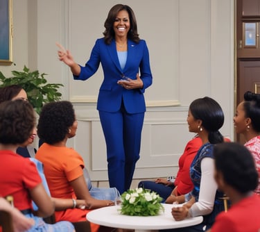 First Lady Michelle Obama speaking to a group of young African women political leaders