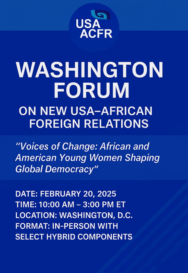 This forum brings together an exceptional group of changemakers from across Africa and the United States—women whose voices, leadership, and lived experiences are transforming governance, diplomacy, and civic life.